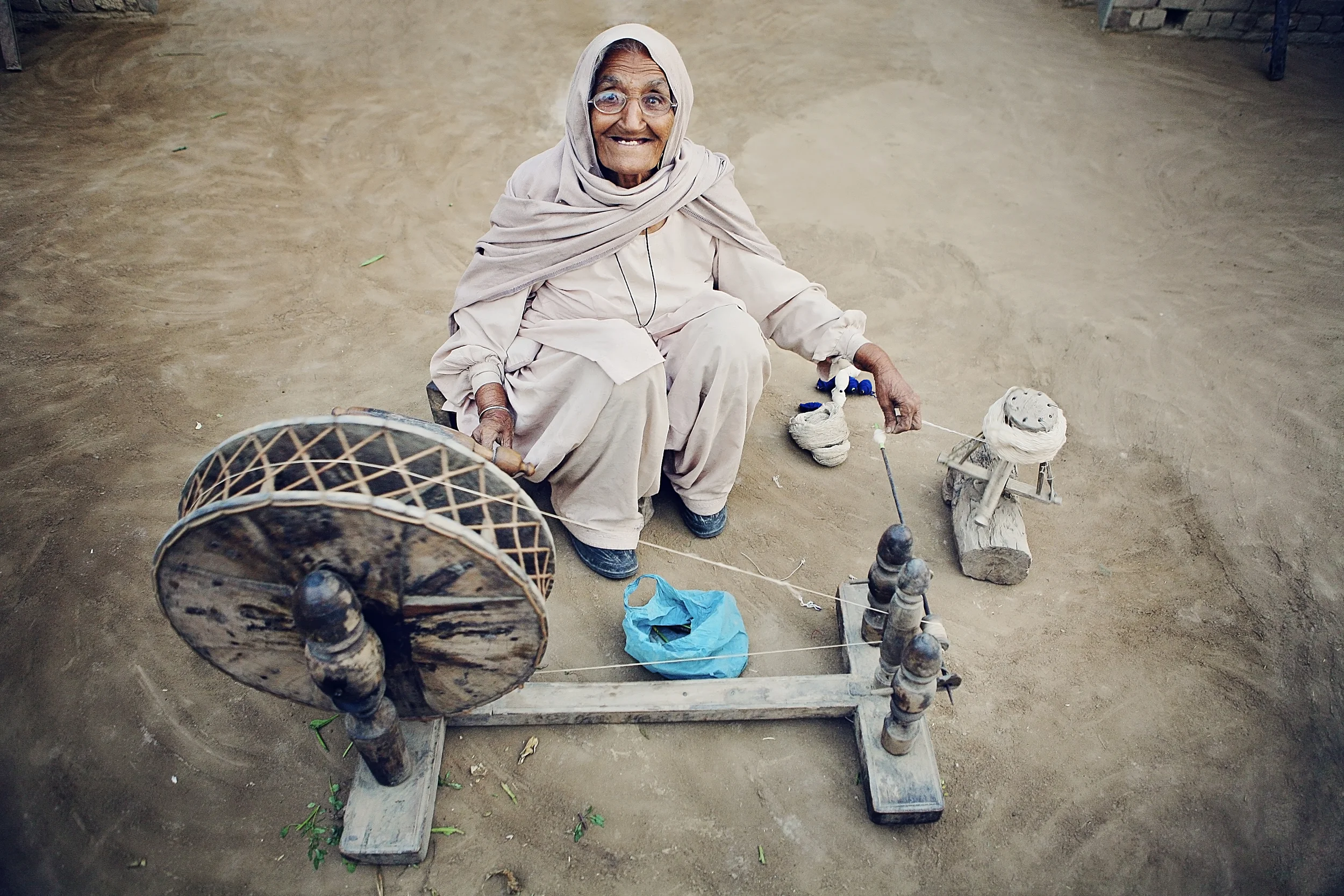 A method of spinning cotton that has been around for centuries in India is still taught by a generation of weavers. Gurdev Ramdasia, 80, still uses this Charkha (spinning wheel), which was passed on to her by her mother, to carry forward this craft.